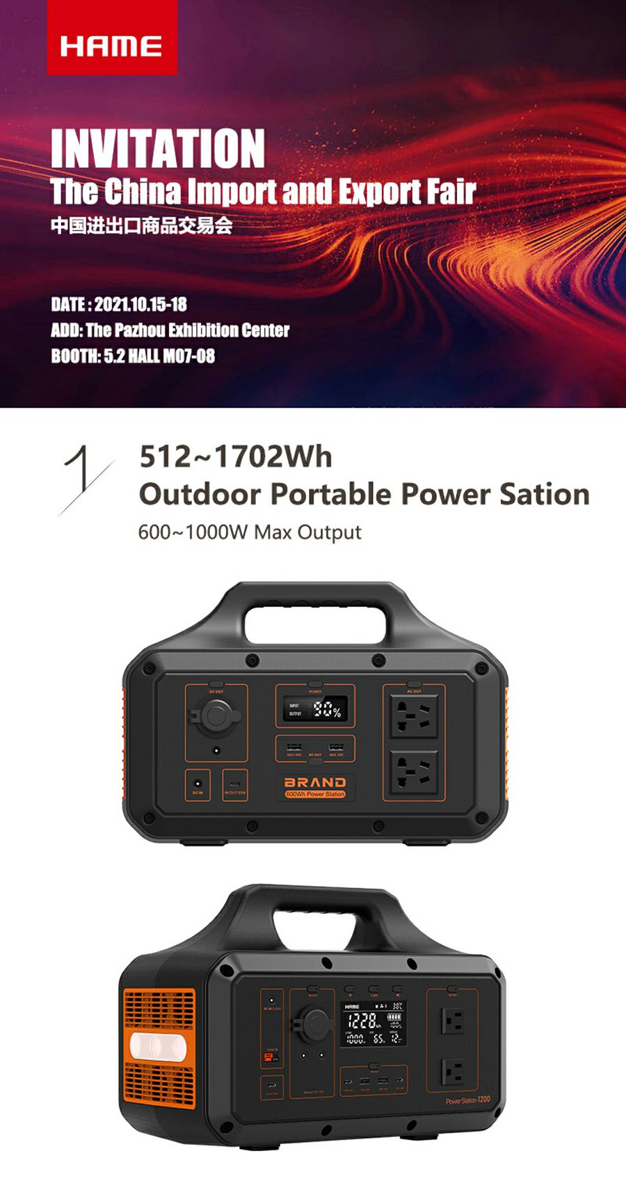 大发在线登录官网-大发(中国)携户外储能电源和MagSafe移动电源出席第130届广交会线下展览,展台位于广交会展览馆A区5号馆5.2 M07~08,欢迎莅临。